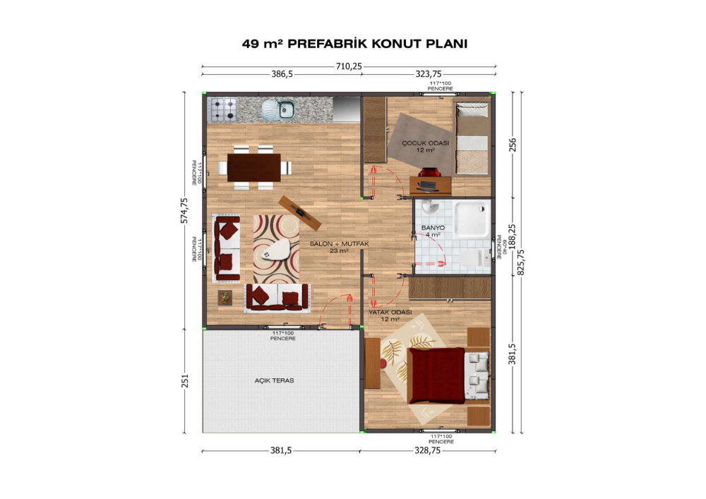 Saray Prefabrik 49 M2 Tek katlı prefabrik Ev
